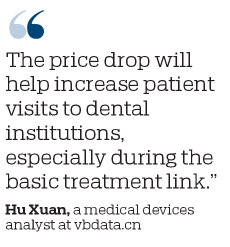 "The rapid price drop in dental implants has brought a major turning point for the dental industry," said Hu Xuan, a medical devices analyst at vbdata.cn, a Chongqing-based healthcare service platform.