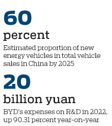 Wang, chairman of BYD, said that R&D breakthroughs have been the driving force of China's rise in the NEV sector. The company's sales started to soar after its first model sporting its more efficient blade batteries was launched in 2021.