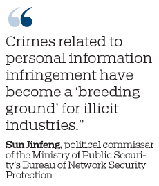 Sun Jinfeng, political commissar of the Ministry of Public Security's Bureau of Network Security Protection, said the number of cases involving the infringement of citizens' personal information has significantly increased over the past two years.
