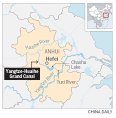 The canal connects China's longest river, the Yangtze, which flows through southern Anhui for 400 kilometers, and the Huaihe River, which runs through the north of the province.