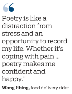 Food takeaway rider who finds respite from his daily work stress in writing poetry publishes his second collection in as many years, Chen Nan reports.