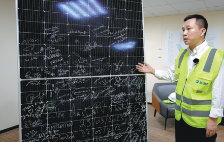 "We were installing almost 20 megawatts a day, setting a record. When we started our renewable energy journey, specifically solar energy, in 2010, it took a year to build a 10-megawatt plant in Masdar (a sustainable community). In the large-scale Al Dhafra PV project, thanks to experienced contractors such as CMEC, we were able to install 20 megawatts every day," Alobaidli said. The project involved obtaining 4 million bifacial solar PV modules from the Chinese mainland to be mounted on 30,000 single-axis sun trackers. "More than 10,000 containers were used to ship the modules. It was challenging," Wang said.