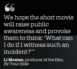 "Xin's character, to some extent, represents the perspective of most of us — a witness of sexual harassment. We hope the short movie will raise public awareness and provoke them to think: 'What can I do if I witness such an incident?'" says Li, who is also the cofounder of the One International Women's Film Festival.