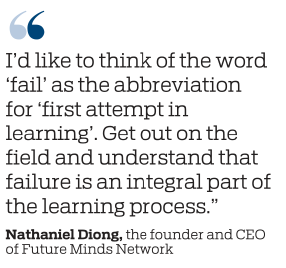 "I'd like to think of the word 'fail' as the abbreviation for 'first attempt in learning'. Get out on the field and understand that failure is an integral part of the learning process," Diong said.