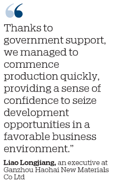 "Thanks to government support, we managed to commence production quickly, providing a sense of confidence to seize development opportunities in a favorable business environment," said Liao Longjiang, an executive at the company.