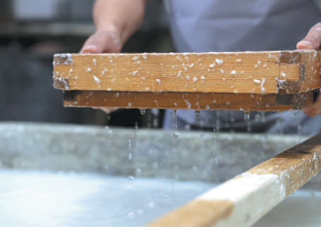 Afterward, he goes to his workshop to make a few sheets of hemp paper, immersing himself in the joy of the paper-making process.