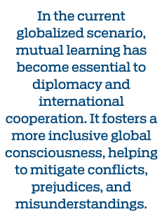 In the current globalized scenario, mutual learning has become essential to diplomacy and international cooperation. It fosters a more inclusive global consciousness, helping to mitigate conflicts, prejudices and misunderstandings. Moreover, it facilitates the creation of more effective and culturally sensitive policies and initiatives, which are crucial for addressing global challenges such as social inequality, climate change, sustainable development and peace promotion.