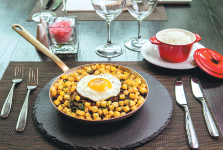 Minchi rice is one of Sou's specialties. She stir-fries minced pork with diced potatoes, serving it with a perfectly fried sunny-side-up egg.