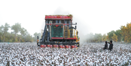 This year in Xinjiang, 85 percent of the region's cotton has been harvested by machines, according to the Ministry of Agriculture and Rural Affairs. In the areas north of the Tianshan Mountains, cotton harvested by machines accounts for more than 97 percent of the processed total.