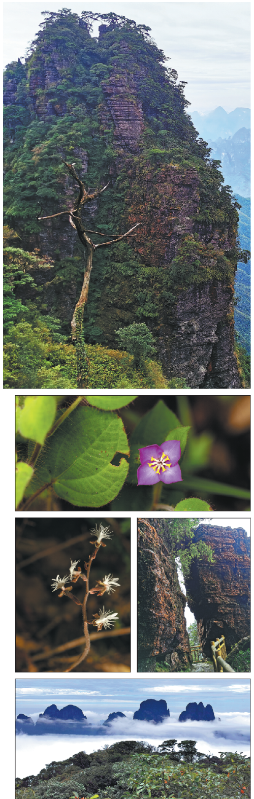 After about half an hour's climb, I saw the first stone pinnacle rising before me. The path goes down and then up, and becomes narrow to squeeze through the crevice between the rock formation and the sheer cliff. Soon I found myself walking into a maze created by rock formations, the mountain path, towering trees and a scarf of clouds.