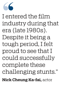 "I entered the film industry during that era. Despite it being a tough period, I felt proud to see that I could successfully complete these challenging stunts," says Cheung.