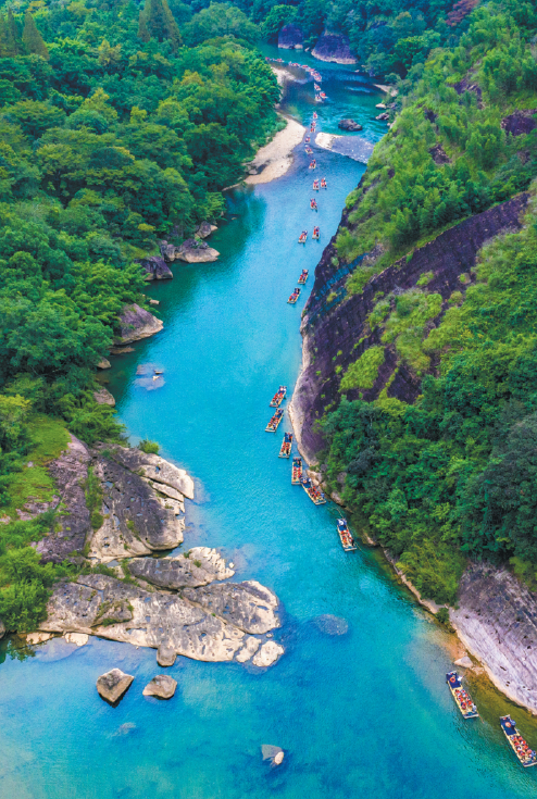 Nearly 1.3 million travelers took the raft tours from January to November, a 36 percent increase over the same period of 2019, before the pandemic, says Zhang Ruicai, deputy general manager of Wuyi Mountains Tourism Development Co, which oversees the scenic area's operations. Business revenues reached nearly 150 million yuan ($21 million) in the first 11 months of last year, up 43 percent over 2019, he adds.