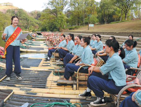 A raft operator has earned acclaim by going beyond merely guiding passengers down the Jiuqu River to masterfully narrating the storied legacy of the Wuyi Mountains, Yang Feiyue reports in Wuyishan, Fujian.
