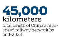 High-speed railway construction, which is key to China seeking high-quality development, gained more traction last year, with the total HSR network extending to 45,000 kilometers by the end of last year, increasing the nation's overall railway system to 159,000 km, said China Railway, the national railway operator.