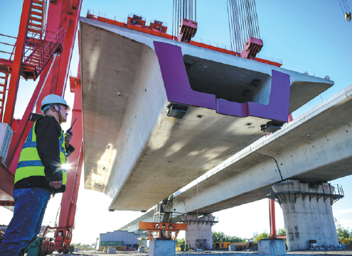 For instance, China Railway 24th Bureau Group Corp, a unit of the centrally administered China Railway Construction Corp, said its builders on the Hefei-Xinyi High-speed Railway achieved major construction progress as they completed precision alignment work on the Dingyuan No 2 railway bridge on schedule, laying a solid foundation for further work.