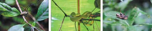 We encountered a beautiful black widow that had just finished weaving its web, a couple of mating locusts, a large lizard busily scouting for food and a green bamboo snake snoozing in a tree. At one point, a river crab tried to scuttle onto a hiker's shoe.