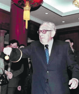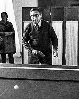 The secret visit, which catapulted Kissinger to international fame, would be followed by Nixon's groundbreaking visit to China in February 1972 and by "many consuming years of agony and ecstasy" in which Lord would watch Kissinger "whiffing ping-pong balls beneath golden rooftops arching to the heavens" and inform him during one of his rare bedridden stints that "your staff has voted for you to remain ill for another day so that they can get some rest".