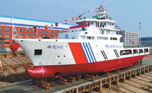 A specialized oil spill recovery vessel Haixun 041, built by Wuhan-based Wuchang Shipbuilding Industry Group Co Ltd, a subsidiary of China Shipbuilding Industry Co Ltd, was launched at its Shuangliu Shipbuilding Base in Wuhan, Hubei province last week.