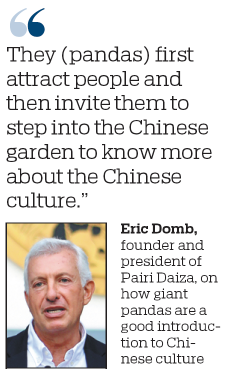 Domb believes that the giant pandas are actually a good way for people to begin learning about Chinese culture. "They first attract people and then invite them to step into the Chinese garden to know more about Chinese culture," he said.