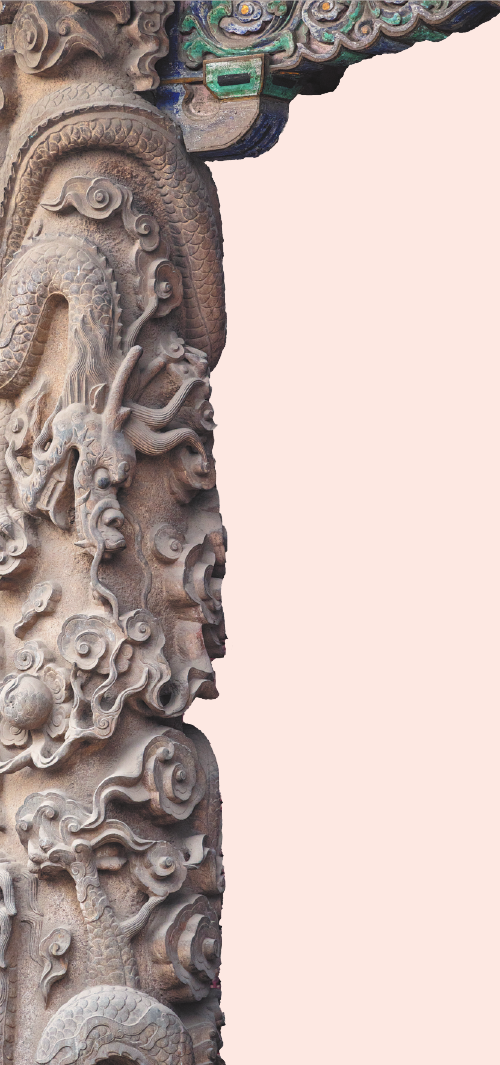 The columns are wrapped in the scaled, sinuous bodies of majestic dragons, half-hidden in clouds. Manes billowing and eyes glistening with intensity, they are there to watch over the sacred place and to ensure the social order as envisioned by the master philosopher.