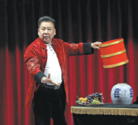 Tian, 60, has worked at Beijing temple fairs since 1996 and performs magic tricks in addition to qigong and tai chi. He learned martial arts when he was a child, and despite his father's objections pursued a career as a folk artist.