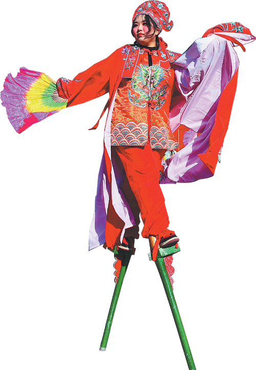 Traditional temple fairs are where people pray for good luck for the new year and have fun with their families, he added. "As a performer, I love seeing children riding on their parents' shoulders, holding a windmill toy in one hand and a tanghulu (candied haws on a stick) in another hand."