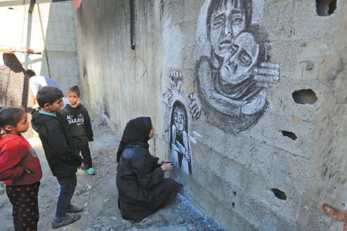 GAZA — Menna Hamouda, 20, a Palestinian artist in the Gaza Strip, busies herself every day painting the faces of displaced children in the central Gazan city of Deir al-Balah amid the conflict between Israel and Hamas.