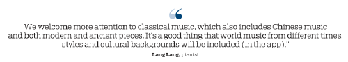 "We welcome more attention to classical music, which also includes Chinese music and both modern and ancient pieces. It's a good thing that world music from different times, styles and cultural backgrounds will be included (in the app)," he tells China Daily.