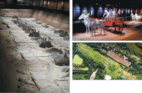 According to Zhou, the site will be staging reenactments of wars in ancient China, including soldiers shooting arrows. In the large hall housing the chariot horse pits, visitors can clearly see the neat layout of chariots with six horses, four horses or two horses, which were used by different levels of nobility.