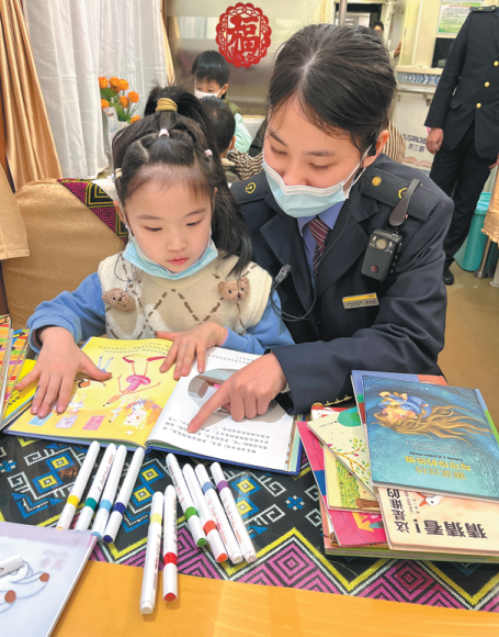 As soon as train conductor Dong announced the opening of the children's corner, kids dashed to the tables. Children and parents crowded the dining car, chatting, laughing, taking photos and sharing their travel experiences.