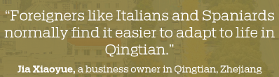Jia believes Qingtian has advantages in attracting foreign merchants and talents. "First, with over 300,000 Qingtian overseas Chinese living abroad, foreign merchants don't have to worry about being deceived by us. Second, foreigners like Italians and Spaniards normally find it easier to adapt to life in Qingtian," she said.