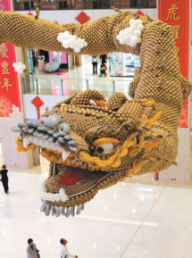 With glittering scales, the record-breaking loong, made up of 38,000 balloons, emanates a golden light, and exudes a sense of power and elegance.