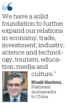 Pakistani Ambassador to China Khalil Hashmi said in an exclusive interview with China Daily that the two nations are "resolved to further bolster high-level exchanges, instill additional substance to the already robust bilateral relations, and further fortify the ironclad friendship in the face of a complex geopolitical and regional milieu".