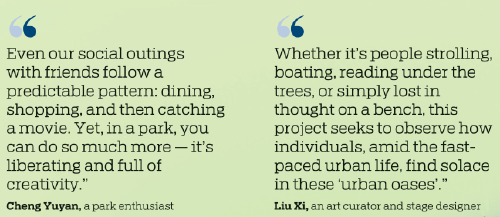 Liu Xi, from Guangzhou, Guangdong province, is also fascinated by the peace and the sense of time slowing down that occur in parks.