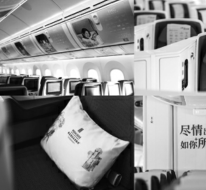 The cabin's overhead luggage compartment is decked with custom decals visible throughout, while the business class section is adorned with tailored lumbar pillows co-created by the Hualuxe brand and Chinese artist Chen Jiu — immersing travelers in charming Chinese aesthetics as they enjoy the comfort of 180-degree reclining seats.