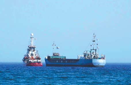 The food, mostly flour, rice and sugar, was loaded onto three vessels and one platform that was already outside the port and were heading to Gaza, it said.