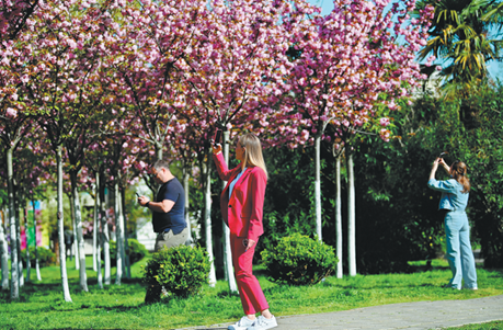 During the summer season, Sochi offers a warm Black Sea with a subtropical climate, although its beaches are characterized by rocky and gray shores, adorned with artificial trees and sunbathing loungers on the modest stretch of sand.