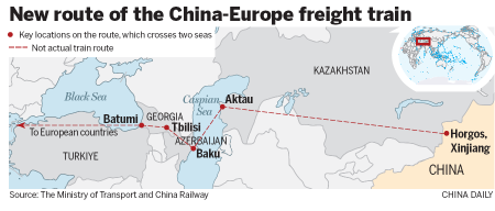 A new China-Europe freight route combining rail and ocean transportation that crosses the Caspian and Black seas has attracted strong interest, he said. The service also passes through countries such as Kazakhstan and Georgia before reaching European countries.