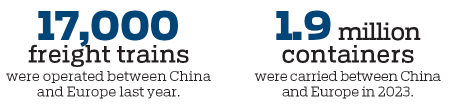 Last year, about 17,000 China-Europe freight train services were operated, carrying 1.9 million containers.