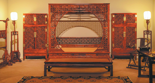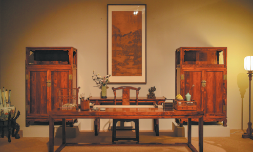 At the exhibition at the National Museum of China, he has re-created spaces, in which full-size sets of furniture are grouped to conjure up a variety of moods: the zhongtang (middle hall), where desks and chairs are placed symmetrically to suggest dignity and the significance of etiquette; furniture for a scholar's study that illustrates the aesthetics of intellectuals; and furniture for a bedroom that soothes both body and heart.