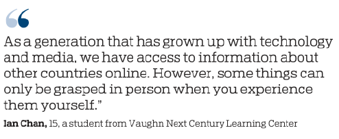Ian Chan, 15, a sophomore from Vaughn, was also impressed by his homestay partner, Fang Xinghe, a student at BHSFIC. "He didn't appear to be an outspoken person, but he opened up to me, sharing things about his life in China and was eager to learn about my life and culture," said Chan. "I also discovered that Fang and his classmates are very good at learning independently and organizing clubs themselves."