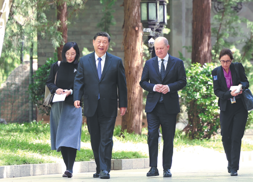 China and Germany should uphold independence and autonomy in engaging in multilateral cooperation, and jointly promote practical actions from the international community to address global challenges, such as climate change, imbalanced development and regional conflicts, contributing more to the balance and stability of the world, Xi said.