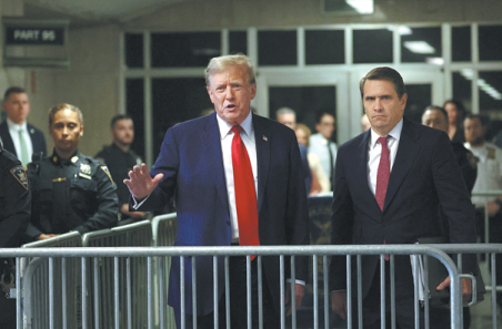 Former US president Donald Trump appeared in a criminal court in Manhattan, New York City, on Monday in the hush money case, making him the first former US president to stand trial on criminal charges.
