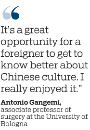 "It's a great opportunity for a foreigner to get to know better about Chinese culture. I really enjoyed it," says Gangemi.