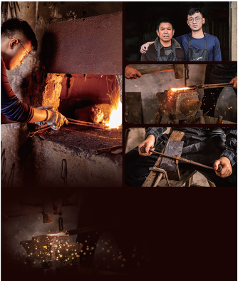 To make a Chinese cleaver, the iron and steel blades need to be heated to more than 1,000 C, and two pieces of iron blades need to be repeatedly hammered and quenched with one piece of steel blade more than 2,000 times.