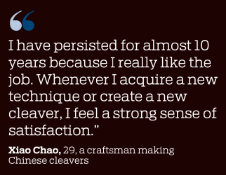 Xiao said it is also difficult to find young people interested in learning to make Chinese cleavers as it requires hard labor and working in tough conditions, but he will continue the work and try to find new ways to promote his products.
