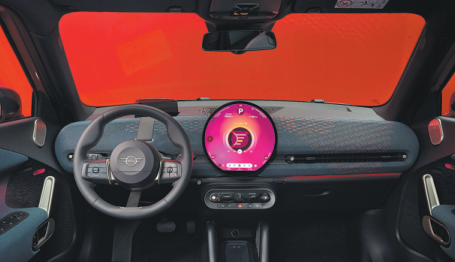 To create an engaging human-vehicle interaction, the New MINI Family members feature an innovative 240-millimeter circular OLED display, which presents higher hardware requirements and software UI/UX adaptation challenges compared to conventional screen designs. The high-resolution touchscreen, developed specifically for MINI, integrates the new MINI Operating System 9 and utilizes projection technology to extend imagery throughout the cabin, enhancing the overall ambience. Additionally, MINI has introduced Spike, a versatile digital assistant pet with up to eight different skin colors and six interactive emotions, adding warmth to the digital experience on the circular OLED display and dashboard.