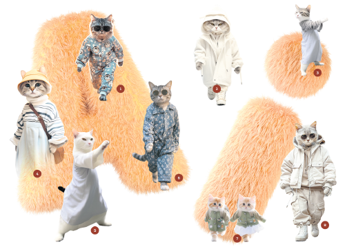 The idea of using felines as fashion models was inspired by his own 3-year-old silver American shorthair cat.