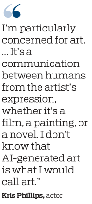 "I'm particularly concerned for art because art comes out of the human spirit and the human emotional experience. It's a communication between humans from the artist's expression, whether it's a film, a painting, or a novel. I don't know that AI-generated art is what I would call art," he says.