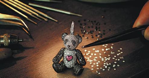 Inspired by pandas, Bobo is designed with a special technique in mind, which allows customers to customize breastpins by fitting them with various diamonds.